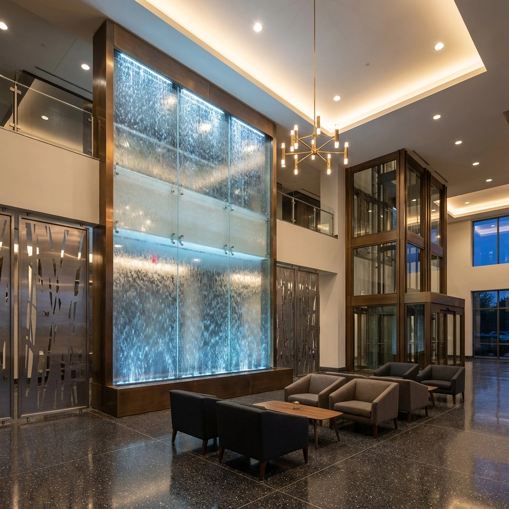 Urban development pressures mean designers must maximize impact in minimal space. Traditional fountains require significant floor area, safety barriers, and substantial structural support. Waterless waterwalls offer the opposite approach: dramatic vertical impact with minimal footprint.